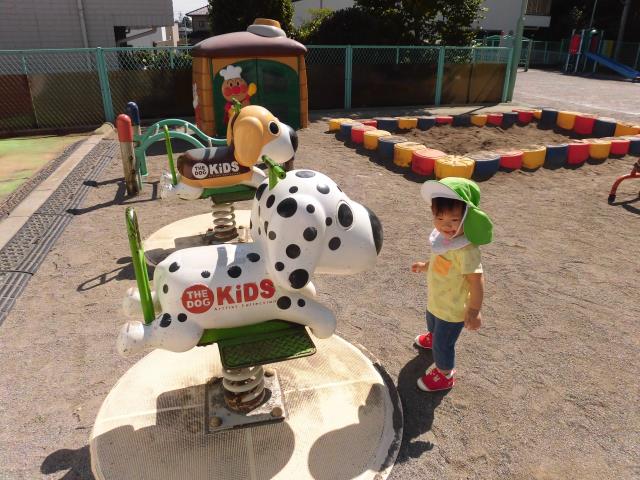 ドッグスプリングに触ってみたり、玄関前のアンパンマンに興奮していたり!お散歩車に乗っているお友達も、みんなつかまり立ちをして周りの景色を眺めていました。