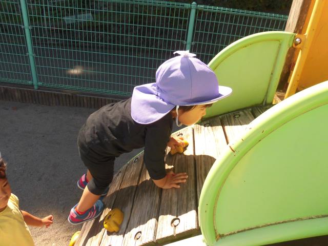 滑り台のはしご登りも1人で上手に安定してのぼれるようになってきました(^^)/