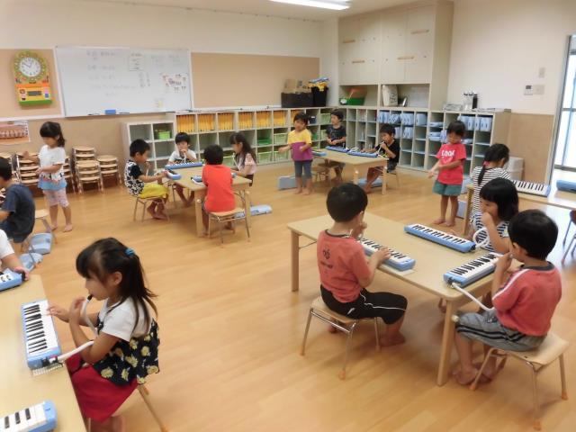 お友達の大好きな鍵盤ハーモニカ♪「聖者の行進」もとっても上手になってきたお友達は、準備が終わるとお友達同士で、「合わせてふこう!」と声を掛け合ったり自分たちで工夫しながら楽しんでいます!