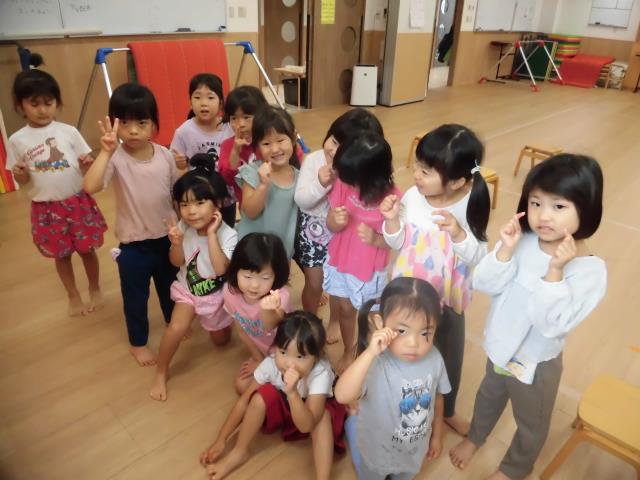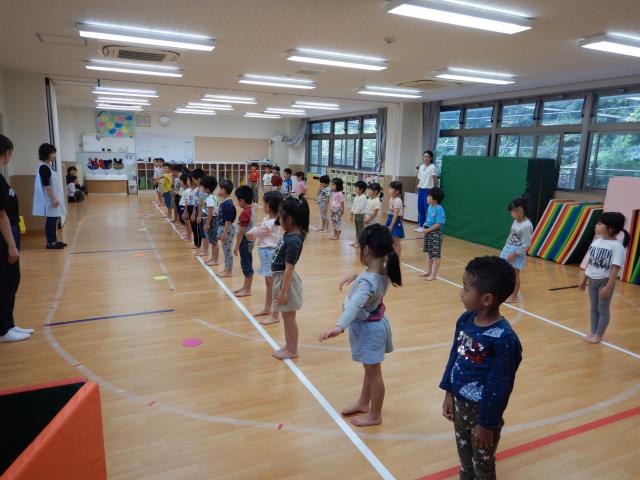 体操ではスペシャルメニューと称し、コースを作って行ないました!途中でトンネルが増えたり、けんけんする場所が増えたりとやることがどんどん増えて行ってもすぐに理解をし、楽しんで様々な動きを楽しみながら体操を行なう事が出来ました(^^)