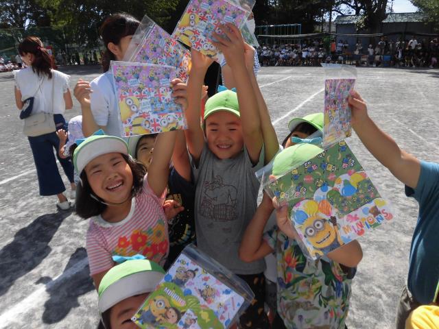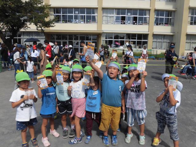 未就学児が参加できるかけっこに参加して元気いっぱいに走りました‼参加賞の縄跳びをもらうと、嬉しそうな笑顔がとても素敵でしたよ‼もらった縄跳びには自分で名前を書いて持ち帰っています‼