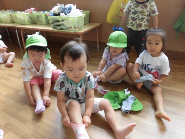 今日は、園庭で遊びました!!園庭に行く前に自分で準備をしました!準備を終えると「できたよ!」と嬉しそうに教えてくれました(^^♪