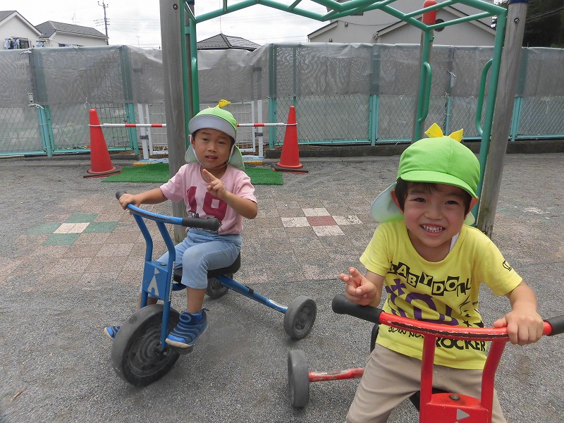 今日はお天気も良く、8月最終日!夏!を感じる一日でした!!外で遊ぶと、新しい三輪車とキックボードが大人気!!砂場でも水を使い、池やお風呂を作っていました。明日から9月、長月です!! 清水