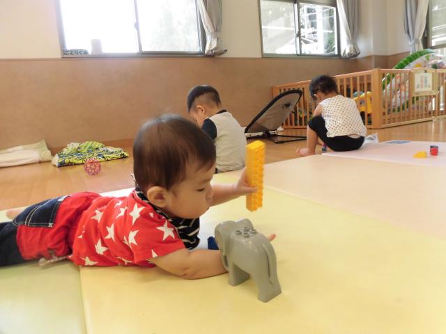 椅子の下に入った玩具を手を伸ばして取っていました!上手に取れると嬉しそうにしていましたよ!!
