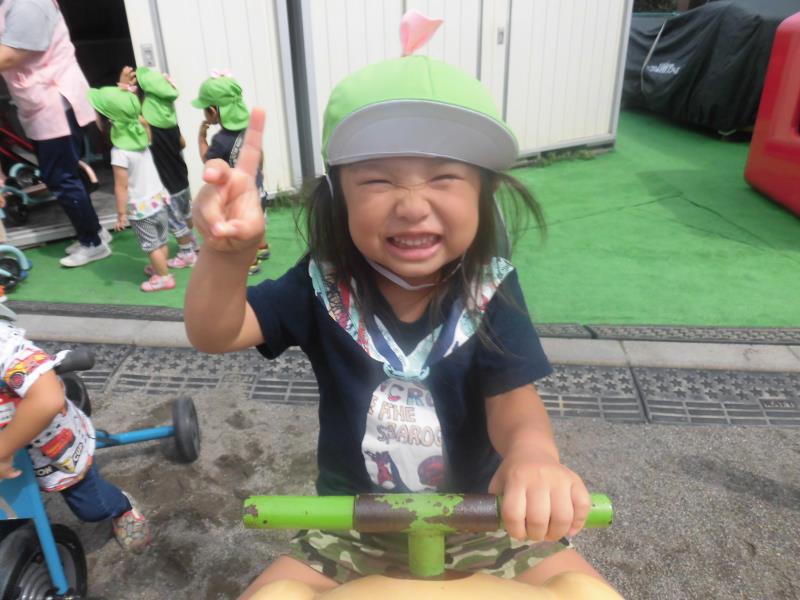 園庭遊びではドッチボールの投げる練習を積極的に行なってたり、三輪車で競争しているお友達もいました!