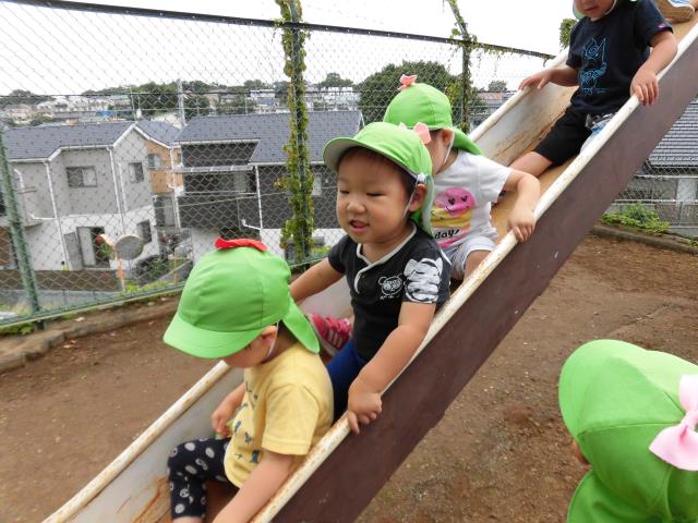 すべり台ではお友達と一緒に滑ってとっても楽しそうでした★