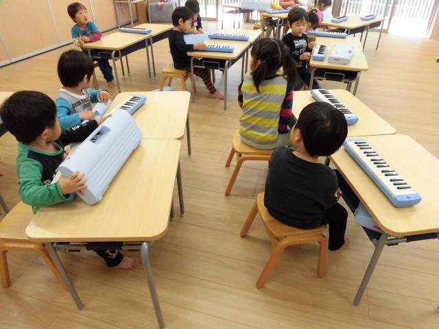 鍵盤ハーモニカでは、姿勢や片付け方、開け方などを伝えました。明日も覚えているかな(*^-^*)?