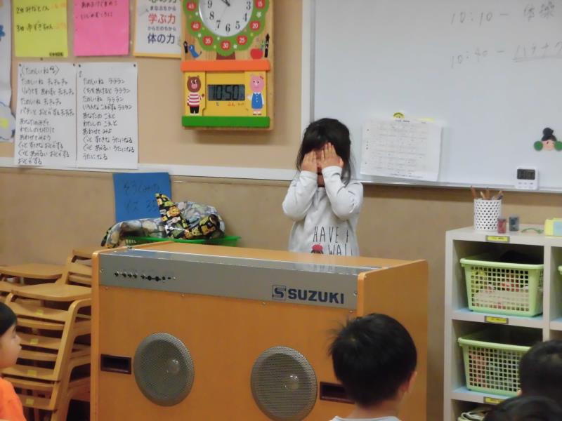 また、今日は実習生の小畑先生が最後の実習日でした。子供達の前で紙芝居を読んでくれました‼とっても真剣に紙芝居を読む姿が見られました‼とっても素敵な写真も取れましたよ。