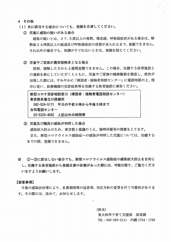 4月より自粛のご協力をしていただいているご家庭も、5月7日から保育が必要な方は「登園理由書」がないと保育の受入が難しいので、登園時に記入していただくか、データをダウンロードして記入してお持ちいただくようお願いいたします。