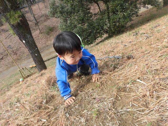 土手に登る際、登るのが苦手なお友達に「○○ちゃん、頑張れ!」と応援したり、お友達の傍まで行き、「大丈夫?」と声を掛け、助け合う姿もありました!