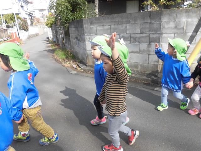 お友達と手を繋ぎながら間が開かないように歩いたり、通りすがりの方たちに自分たちから挨拶も出来るようになってきました。