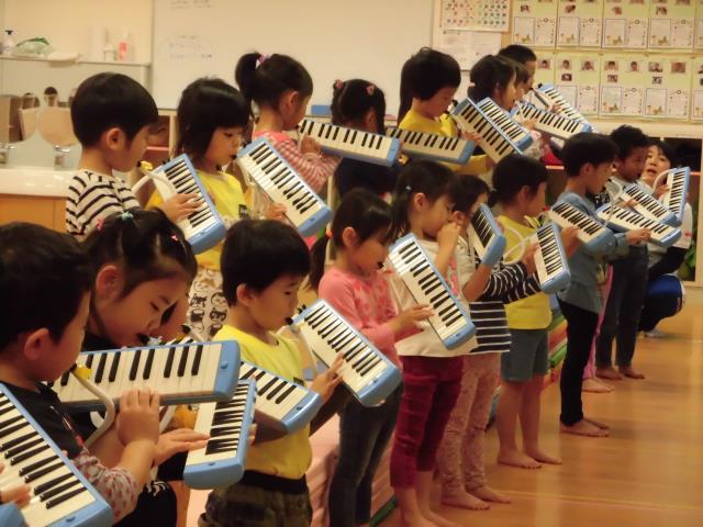 今日は妹尾先生に歌と鍵盤ハーモニカを教えて頂きました♪次みんなの挑戦はスタッカート!!吹き方のイメージはポップコーンです!優しくはじけるように♪みんなでおいしいおいしいポップコーンを作りたい!と意識していました。イメージや表現が楽しくでき、嬉しそうでした。歌も伸ばすところや声の出し方を意識できるように気持ちを一つに!唄っていきます♪みんな音楽大好き♡ 清水
