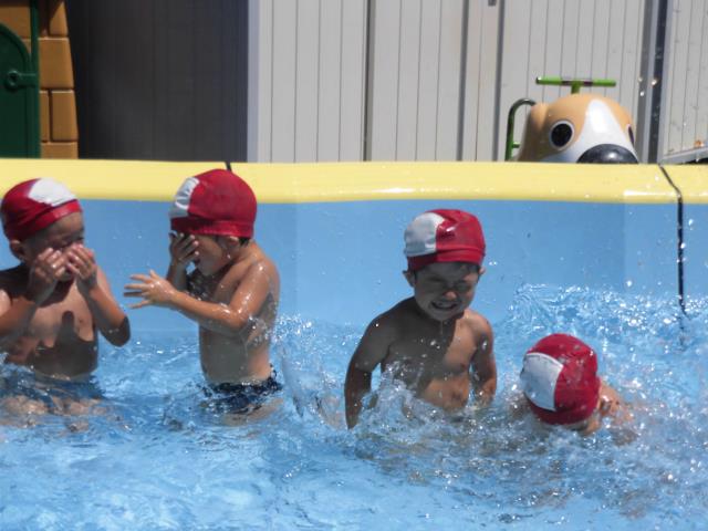今日もとっても暑い一日でしたね。暑い日に子ども達が楽しみにしているプールに入りました‼