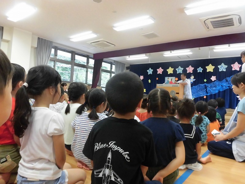 集会では紙芝居を読んでもらい集中して見ていました!