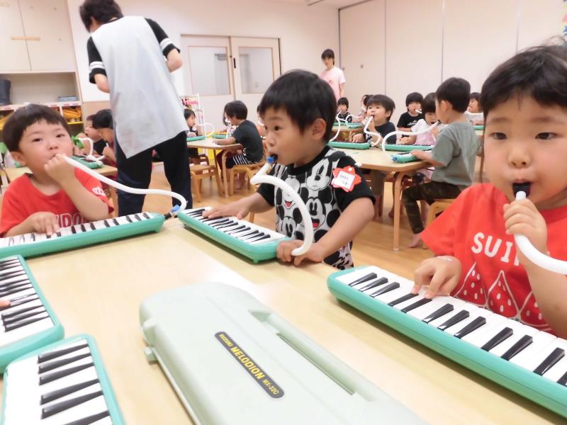 今、きりん組では鍵盤ハーモニカで「かっこう」を