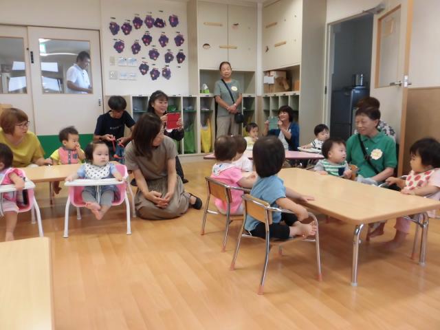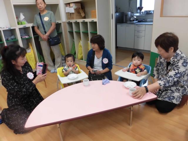 おじいちゃまおばあちゃまと一緒におやつを食べたり、ふれあい遊びで歌を行ない、楽しんでいました(^^♪