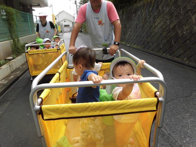 救急車の音に反応したり、電車を興味津々にみたり、興味の持ったものを指さしたり...とそれぞれ楽しんでいました。