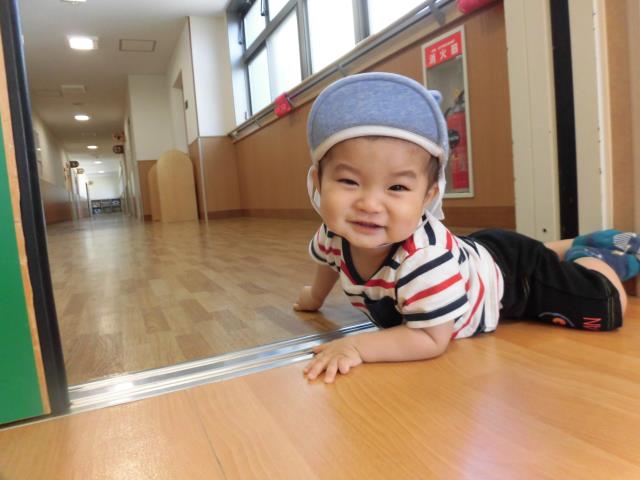 沢山歩いたりハイハイをして動いたり、ボール遊びをしたり、外にいる保育者やお友達に「おーい」と声を掛けていました!!