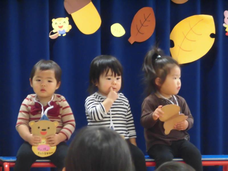 クラスからは、白組が♪どんぐりころころ、青組が♪大きな栗の木の下で をプレゼントしましたよ!