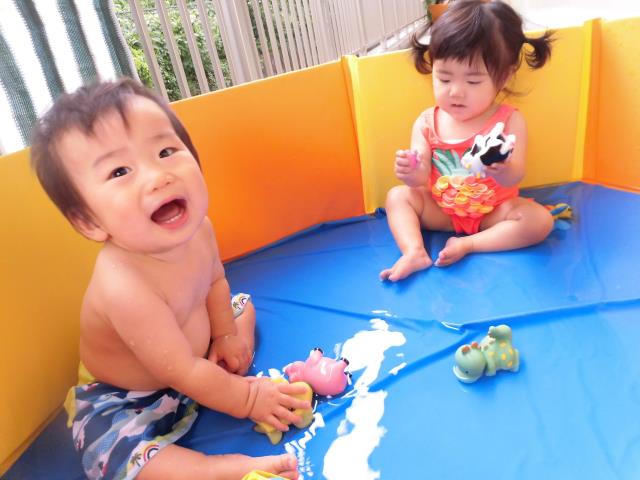 子ども達は元気いっぱいプール遊びをしていましたよ(*^^*)