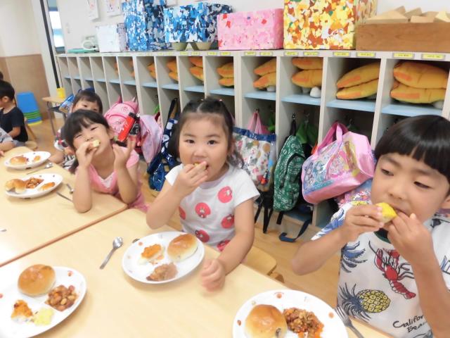 今日のお給食は「夏野菜カレー」でした!!朝から楽しみにしていた子ども達は、「はやく食べたいね~♡」と活動の合間に会話を楽しんでいました!!プールでは泳ぐことがだんだんと上手になっていて、楽しそうにチャレンジする姿があります。夏に一つ一つ成長を見せてくれる子ども達です!!