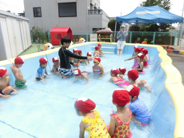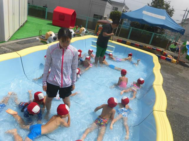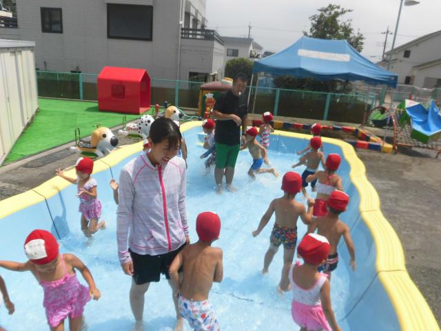 今日はとっても暑かったですね!太陽がギラギラという感じでした。子ども達はプールを思いっきり楽しんでいましたよ!!
