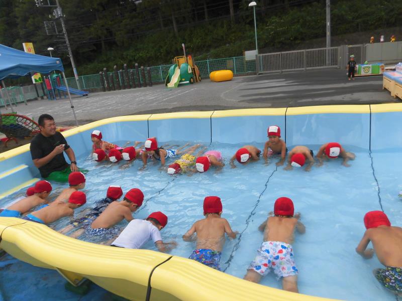 プール遊びでは保育者の話をしっかりと聞き、