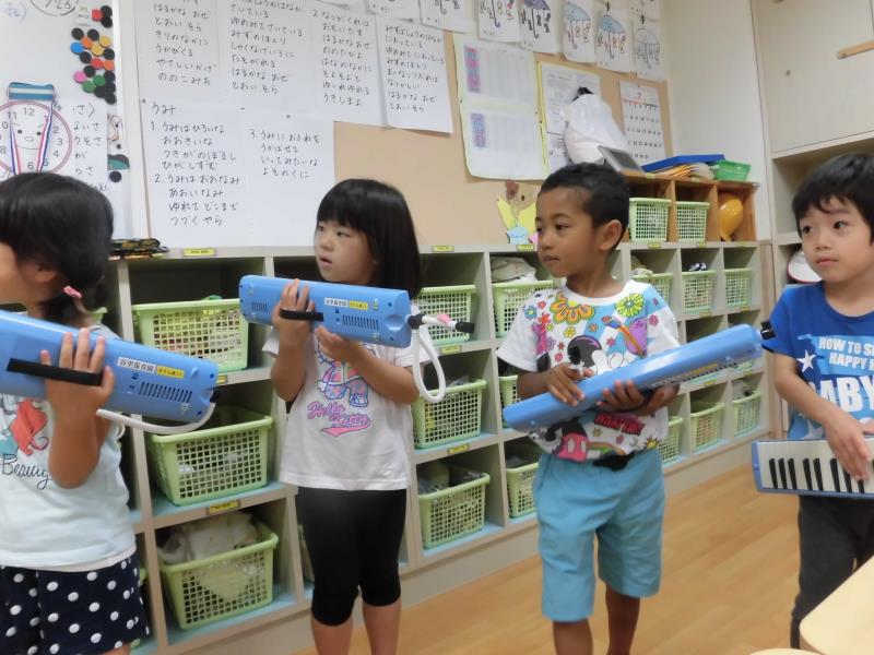 今日はむしむしとした一日でしたね。鍵盤ハーモニカでかえるの歌の名人テストをしました!!自信を持って堂々と発表!!かっこよかったです。名人シールを付けてニコニコでした!明日はプールに入れるかな!?楽しみです。 清水