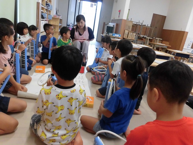 鍵盤ハーモニカの時間に園長先生から楽しい音遊びを