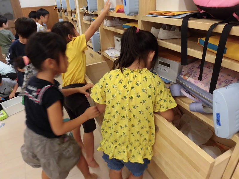 今日もとても暑い一日でしたね‼子供の口から、台風一過っていうんだよ‼という言葉が聞かれ、良く知ってるなぁと感心してしてしまう場面がありました。お家でもニュースやお父さんお母さんのお話をよく聞いているのだなぁと感じましたよ‼