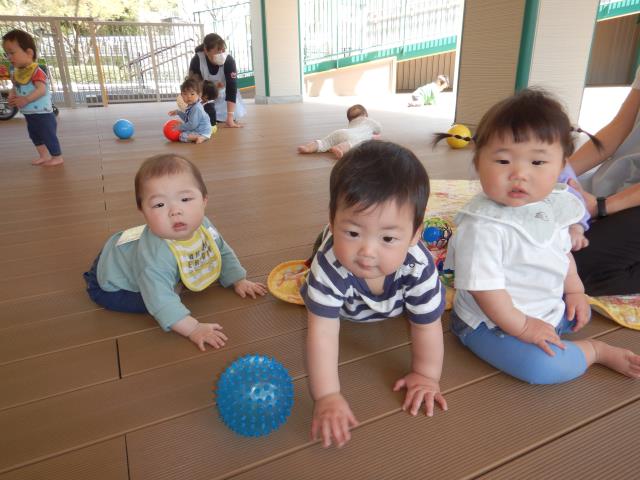 ボールや三輪車、ずりばいをしてたくさん身体を動かしてあそびました。