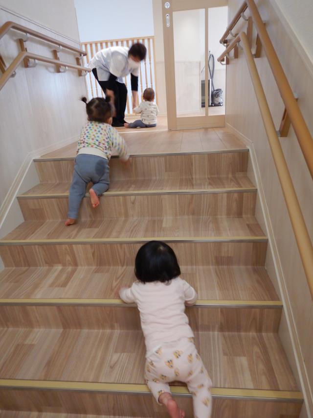 ベストを着るとテラスに行くことがわかったのかすぐに階段へ向かう子ども達。足取り軽やかでした!