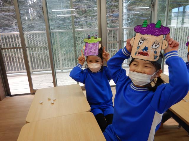 今日は節分!朝から「鬼退治をするよ!」と意気込む子ども達でした!!自分の中にいる泣き虫鬼や怒りんぼう鬼をなくすために、大きい声でおにはそとっ!!ふくをうち!と豆まきをしました☆勇気を出して鬼に立ち向かったきりん組、、、みんなで退治できたね☺そして幸せでいっぱいになりますように♡本日お持ち帰りで豆、お面、ますがあります。是非子ども達とお家でもお楽しみください♩白相あ