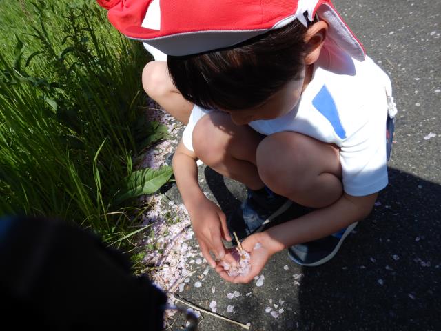 桜の花びらを集めたり、桜シャワーをしたり春ならではの遊び方を満喫しました。