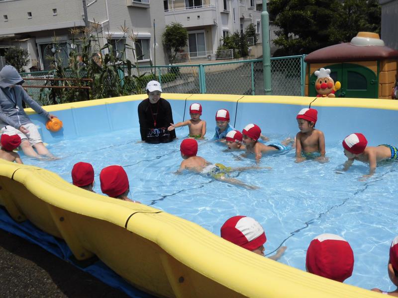 プールが始まってから時間が経ち、初日は顔に水がつけられなかった子も自分から顔をつけられるようになっている子が増えました!!