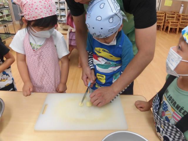今日はクッキングがありました。みんな朝からとっても楽しみにしていました。「自分でクッキングの準備・お仕度したよ!」と言っていた子がとっても多く、みんな出来る事は自分でやろうね。と昨日お話した事、よく覚えていました!そしてみんなその力がついてきましたね。とっても凄いです!みんなよく話を聞き、クッキングを楽しみました! 清水