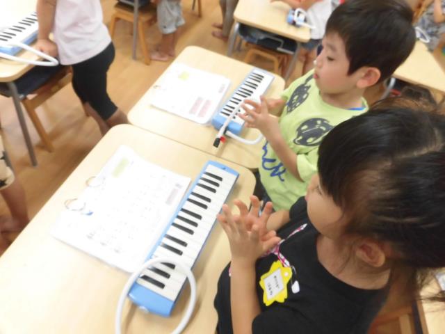 今日は6月のお誕生会でした。鍵盤ハーモニカで「メリーさんのひつじ」を演奏しました!ぜひ貼り紙をご覧ください!