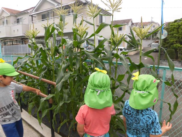 「トウモロコシのほうが背が高いね!」と驚いていましたよ!