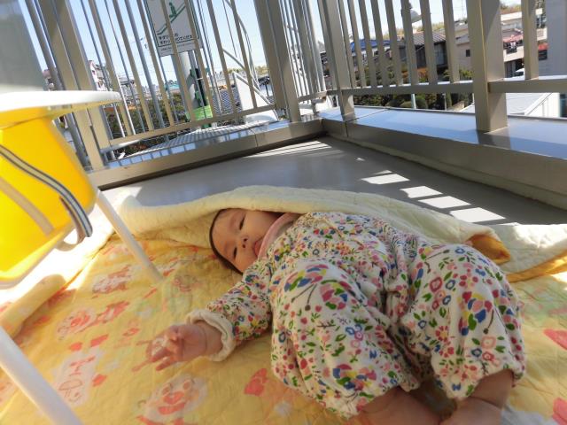 テラスに出ると暖かい日の光に思わずゆっくりと目を閉じていた子ども達(*´-`*)♡