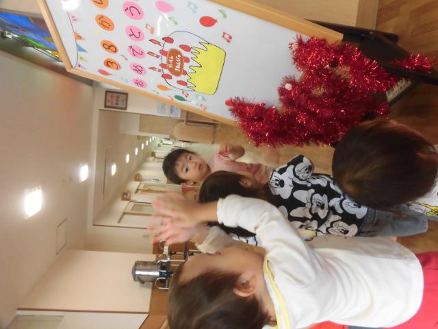 お部屋に戻る時にちょうどアンパンマンの時計が動き出し、アンパンマンの音楽を聴きながらとっても大喜びの子ども達でした(*^-^*)