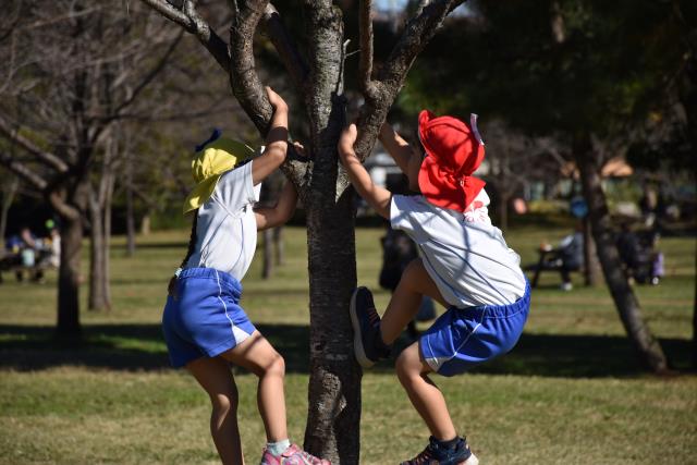 風に負けずに園庭をところせましと走りまわり、そのパワフルさは見ていて元気をもらえますね!