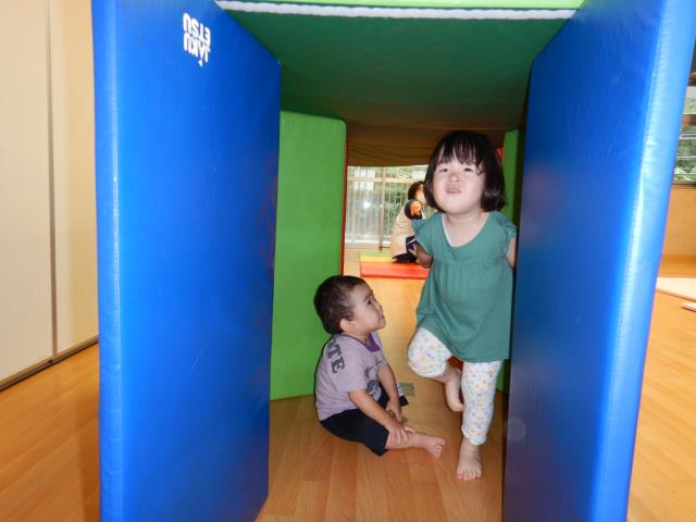 階段やトンネルに興味津々の子ども達(^^♪順番を守って楽しく遊んでいましたよ!又、小さいお友達が泣いていたり、困っていると声を掛け、助けている姿も見られました☆