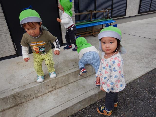 1組のお友達は園庭遊び、2組のお友達は佐山神社に散歩に出掛けました。