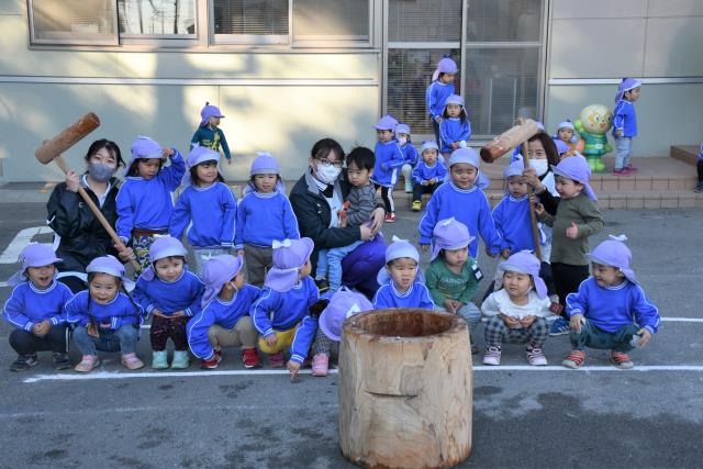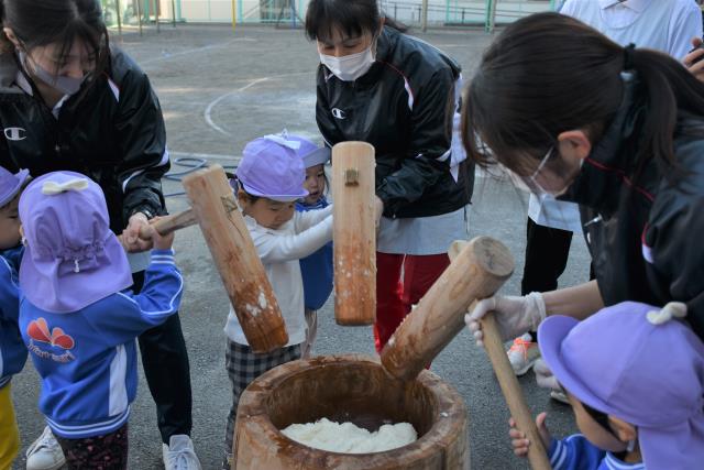 保育者と一緒に餅を付き、とても楽しそうでした♩