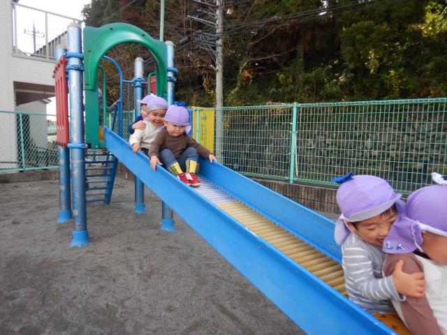 今日は、ル・ボアで過ごしました。サンタさんからのプレゼントであるル・ボアに子ども達は朝からワクワクでした!りす組のお友達と手を繋ぎ、歩きました!
