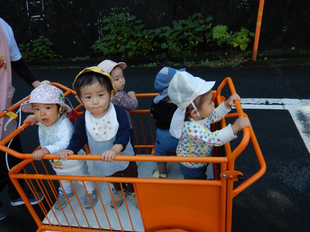 外に出て散歩車に乗ってから感じる風の心地よさにのんびり…のことり組の子ども達。途中庭先でなっている柿を見たり、秋を感じる時もありました。