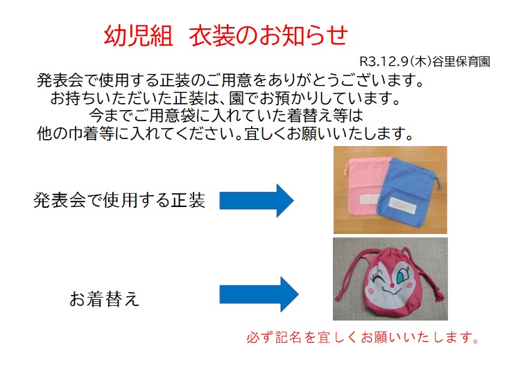 谷里保育園へのご理解・ご協力ありがとうございます。