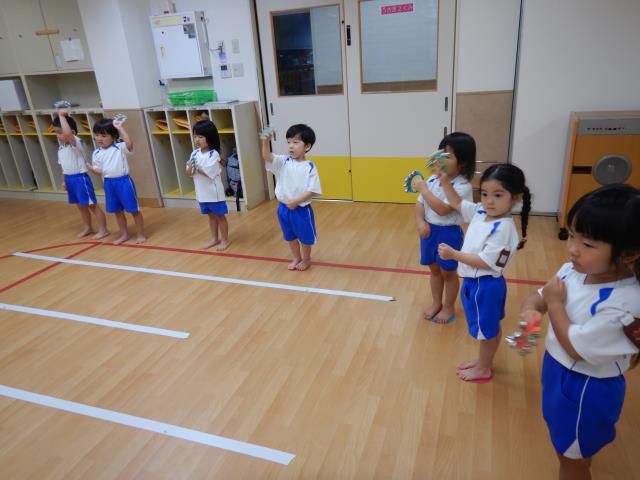 音楽に合わせてリズムをとる事を何回もやるうちに覚えてきた子ども達でした♪