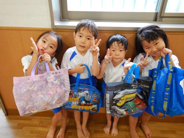 太陽が久しぶりに顔を出し、今年最後のプール遊びが出来ました☆水に慣れることから始め、今では全員が水に顔をつけられるようになりました。大好きな先生、お友達と楽しみながらプール遊びをしたことがみんなの夏の思い出になっています!(^^)!