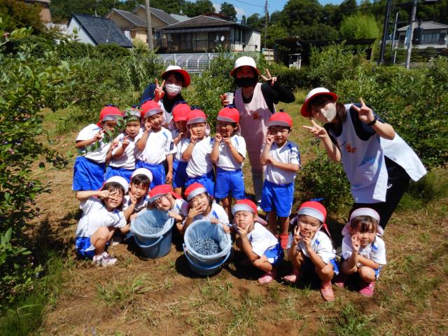 またブルーベリー狩りでは、「90、91、92、、、」と一粒ずつ数えながら大切に獲っていました。紙コップいっぱいにとったら分3つ食べていいよ!という畑の方の言葉に「やったー!」とニコニコ☺この夏、様々な食物や草花に触れる機会があり、子ども達の食育にも繋がりました☆